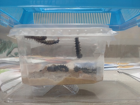 Bild 1: Die Raupen am ersten Tag.