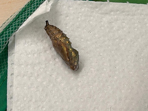 Bild 4: Die erste Raupe fängt an sich zu verpuppen.