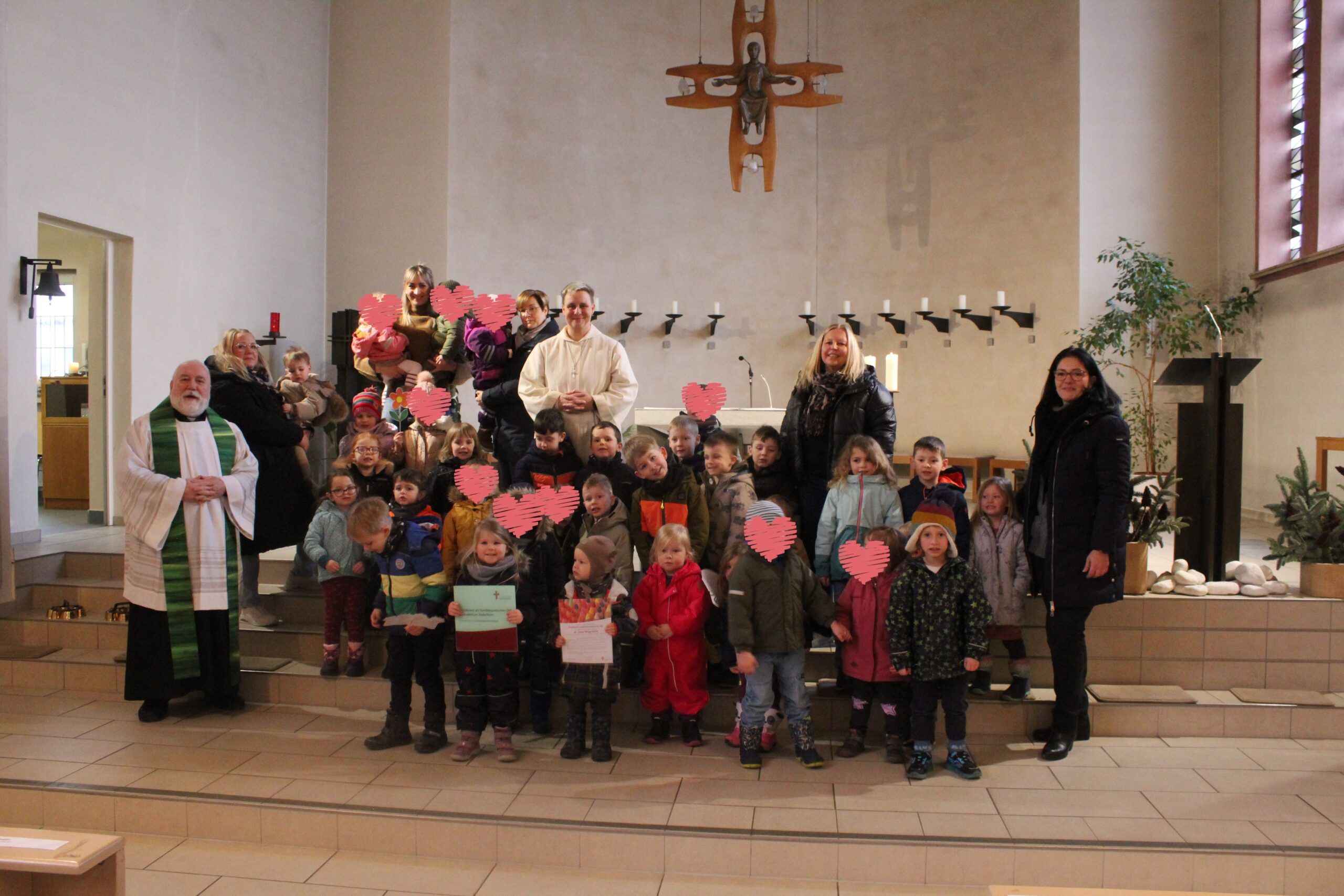 Im Rahmen eines feierlichen Gottesdienstes wurde unserer Kindertageseinrichtung das Zertifikat „Kita als familienpastoraler Ort“ überreicht. Der Gottesdienst, der von einer warmen und wertschätzenden Atmosphäre geprägt war, wurde gemeinsam von Kindern, Eltern und Mitarbeitenden der Kita mitgestaltet und machte eindrucksvoll sichtbar, was unsere Einrichtung auszeichnet: gelebte Gemeinschaft.
